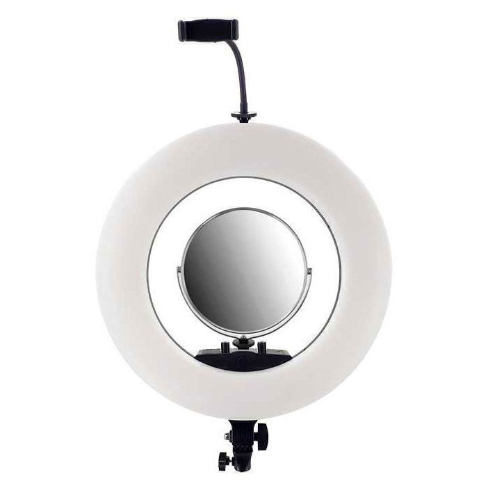 رینگ لایت هیرو مدل SY-3161 IIIرینگ لایتSY-3161 IIIساخت برند پرطرفدار HERO از جمله رینگ لایت های کاربردی و همه کاره مناسب استفاده ی آرایشی و عکاسی و فیلم برداری است که به جهت باتری خور بودن آن می توان از این رینگ لایت به صورت پرتابل در فضاهای خارج از استودیو و سالن های آرایشی نیز استفاده نمود. رینگ لایت های سری SY-3161lll در چندین مدل 3161 و3161II تولید و روانه بازار شدند که به جهت پرتاب نور بالا و با کیفیت بسیار مورد استقبال قرار گرفت و اما رینگ لایت 3161III جدیدترین رینگ لایت سری SY است که نسبت به مدل های سابق خود کیفیت بالاتری دارد.این رینگ لایت همچون مدل های دیگر با قطر 45 سانتی متر از جمله رینگ لایت های ایده آل است.جنس دیفیوزر این مدل نسبت به مدل های پیشین کیفیت بالاتری داشته و نور خروجی رینگ لایت را نرم تر و با کنتراست کمتری بازتاب می دهد از جمله مهم ترین ویژگی این رینگ لایت می توان به پورت USB آن اشاره کرد که به کاربر این امکان را می دهد حین استفاده از رینگ لایت،گوشی خود را با آن شارژ نماید. نور خروجی این رینگ لایت 96 وات و همچون مدل های سابق خود است با این تفاوت که کیفیت و پرتاب نور در این مدل بسیار قابل توجه است. صفحه نمایشگر این مدل با حاشیه سبز خود، رینگ لایت 3161 III را جذاب و زیبا نمایش می دهد.تمامی تنظیمات در این رینگ لایت از طریق صفحه نمایش قابل مشاهده است. از دیگر تفاوت های این مدل با سایر رینگ لایت های سری 3161 به این گزینه می توان اشاره کرد که این رینگ لایت فاقد دکمه روشن و خاموش بوده و تنها از طریق پیچ قدرت خروجی نور می توانید نور رینگ لایت را از 0 تا 100 تنظیم نمایید
